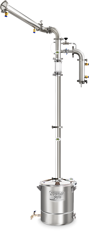 Электронный термометр установлен на крышке бака и в узле отбора, что позволяет контролировать температуру восходящих спиртовых паров.